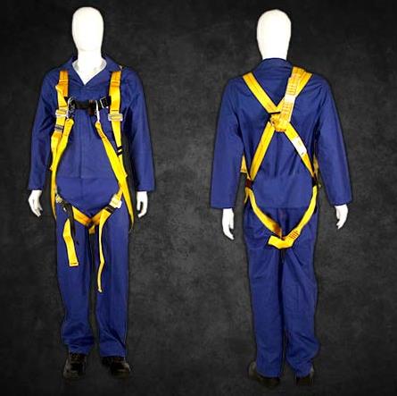 Full Body Harness that has a double lanyard without safety hooks.